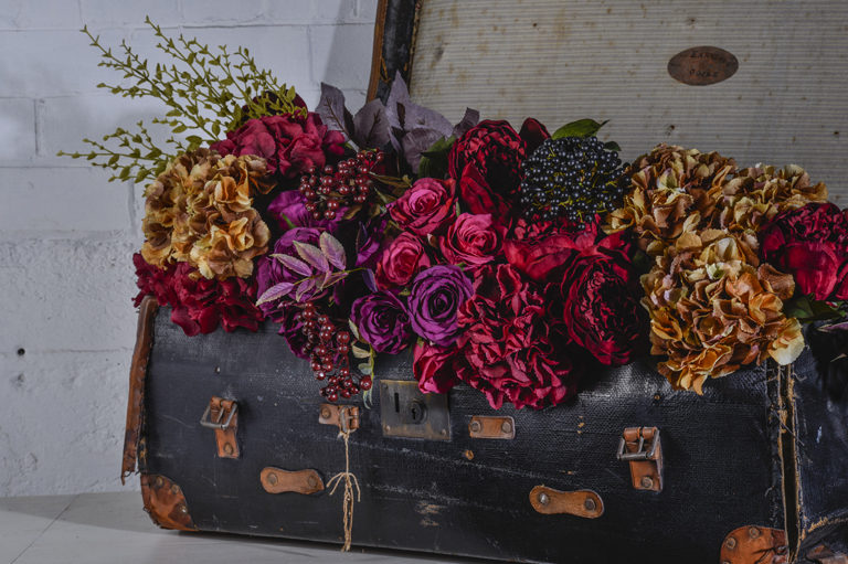 The introduction of fashion flowers, which was made possible through artificial stems, now means that jewel tones can be achieved as part of an arrangement too, bringing a whole new level to the colour scheme. The deep hues and vibrant colours of the theme work beautifully as artificial flowers, which can then be paired perfectly with any of the jewel toned glassware.