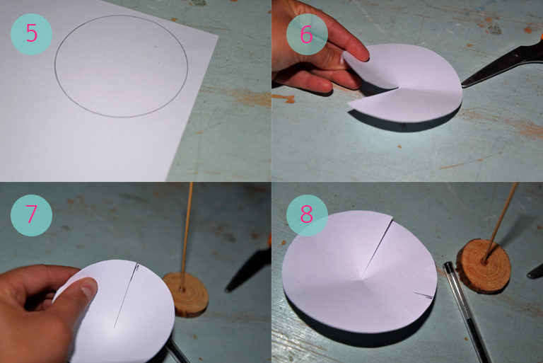 Cut your circle out and cut a straight line to the centre point of your circle.